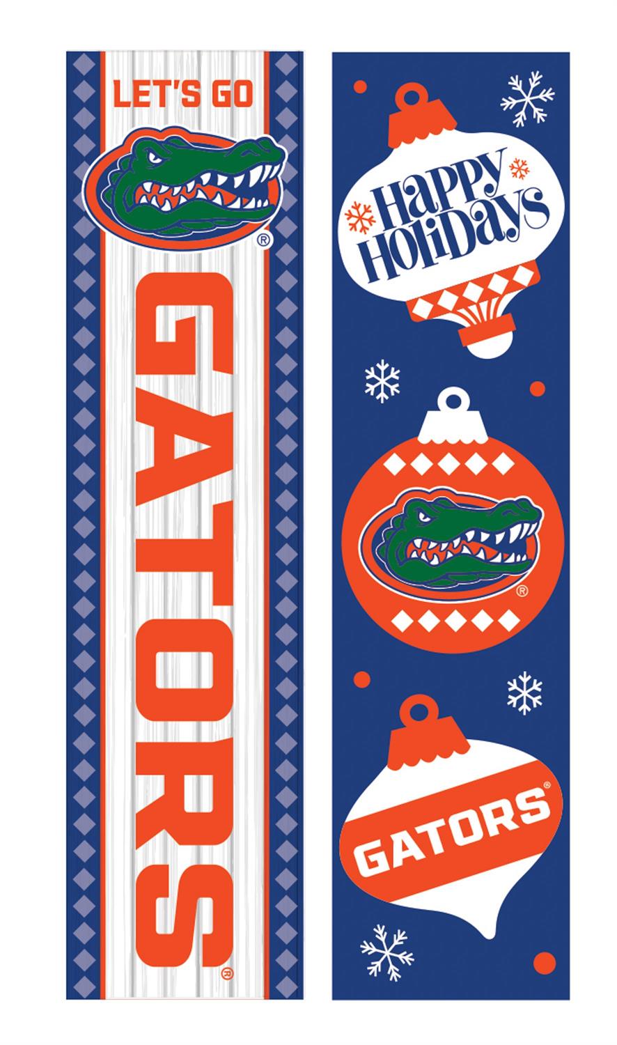 Celebrate the holiday season and show off your University of Florida pride with this double-sided porch leaner. Perfectly sized at 47 inches, it adds a festive touch to your home décor. One side features vibrant team colors and the iconic Gators logo, while the reverse side offers a delightful Christmas theme. Made from durable materials, it's designed to withstand the elements, making it ideal for both indoor and outdoor display. Whether placed by the front door or on the porch, it's a great way to welcome guests with a touch of collegiate spirit.