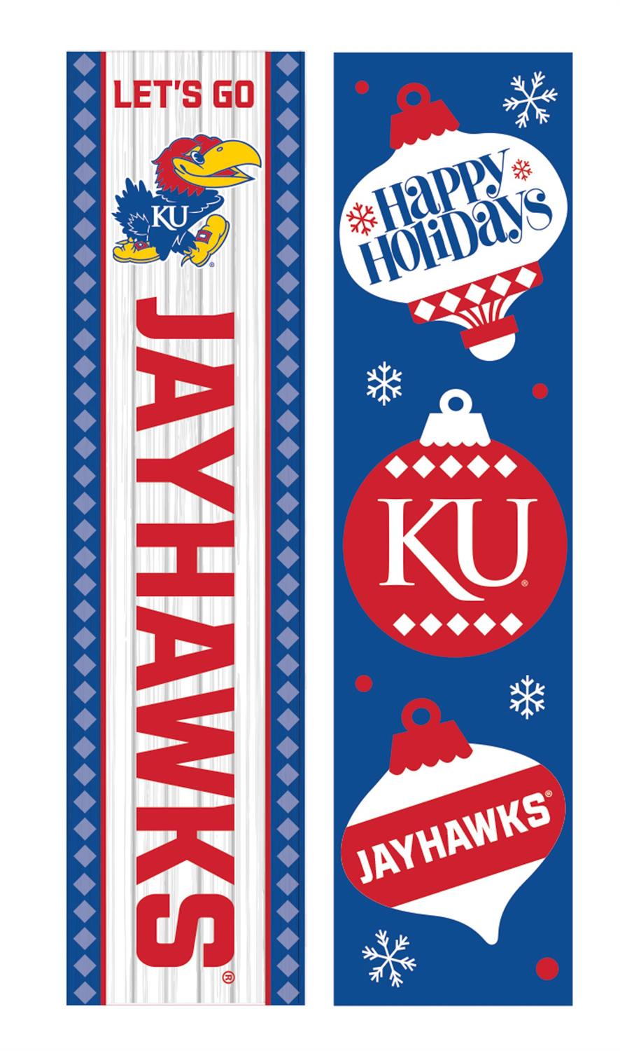Show off your school spirit this holiday season with the 46" Double Sided Leaner featuring the University of Kansas. This vibrant porch leaner stands proudly at 47 inches tall and is the perfect addition to your home’s exterior decor. Crafted from durable materials, it showcases bold graphics on both sides, making it a versatile piece for any Jayhawks fan. Whether it’s game day or the festive season, this leaner brings a touch of collegiate pride to your front porch.