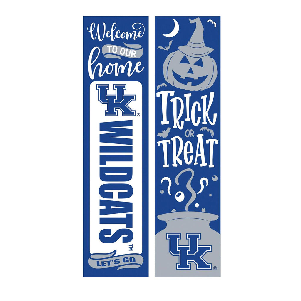 Showcase your team spirit while adding festive charm to your porch with the University of Kentucky Double Sided Leaner. This versatile 47-inch leaner is perfect for both game days and Halloween. One side features a welcoming 'Wildcats' theme, while the other side offers a spooky 'Trick or Treat' design complete with a Halloween pumpkin motif. Crafted for durability, it's a perfect seasonal addition to your home décor, offering a bold statement in blue and white. Whether you're cheering for the Wildcats or welcoming trick-or-treaters, this leaner has you covered.