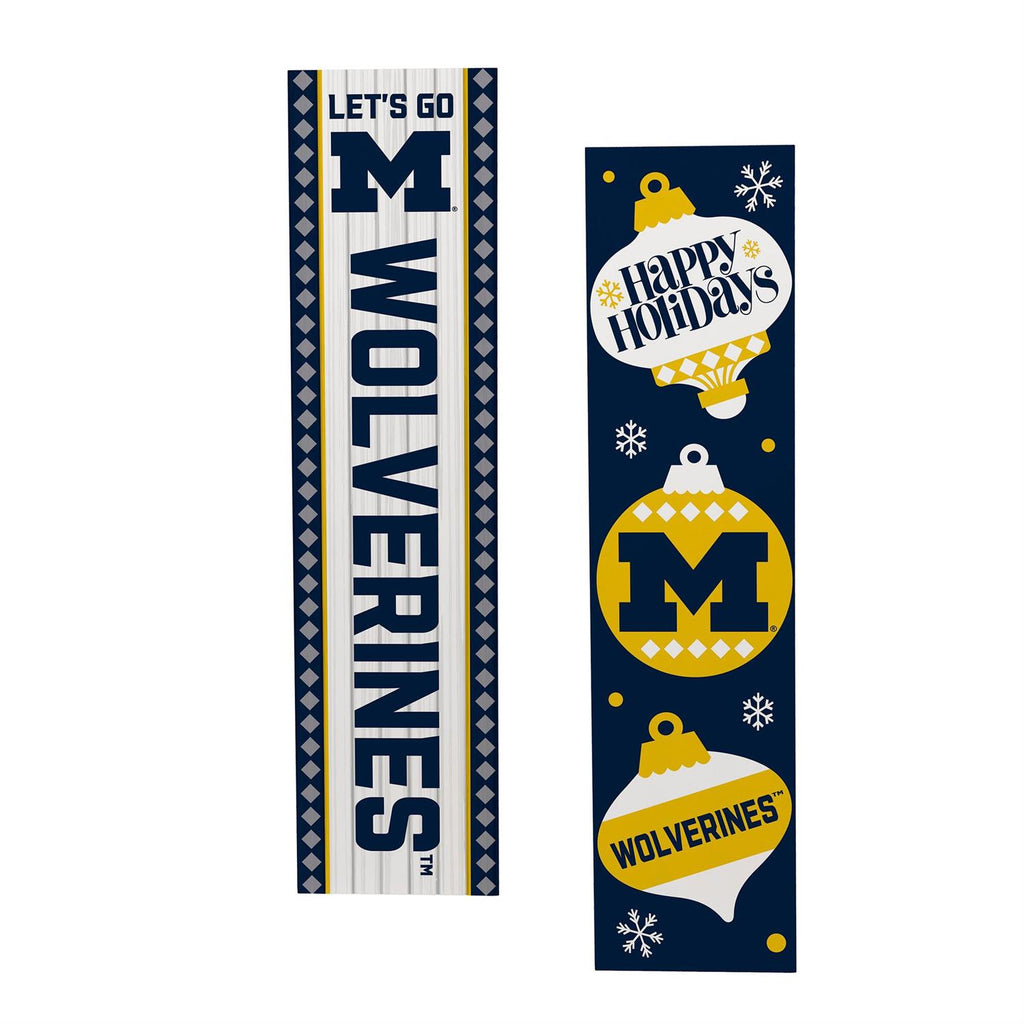 Show your team spirit this holiday season with the 46" Double Sided Leaner featuring University of Michigan themes. Perfect for adding a festive touch to your porch, this leaner showcases vibrant team colors and logos. Crafted to withstand outdoor conditions, it enhances your holiday décor while celebrating your favorite team. The double-sided design offers versatility, allowing you to switch sides for a fresh look. Ideal for Michigan fans looking to combine holiday cheer with school pride.