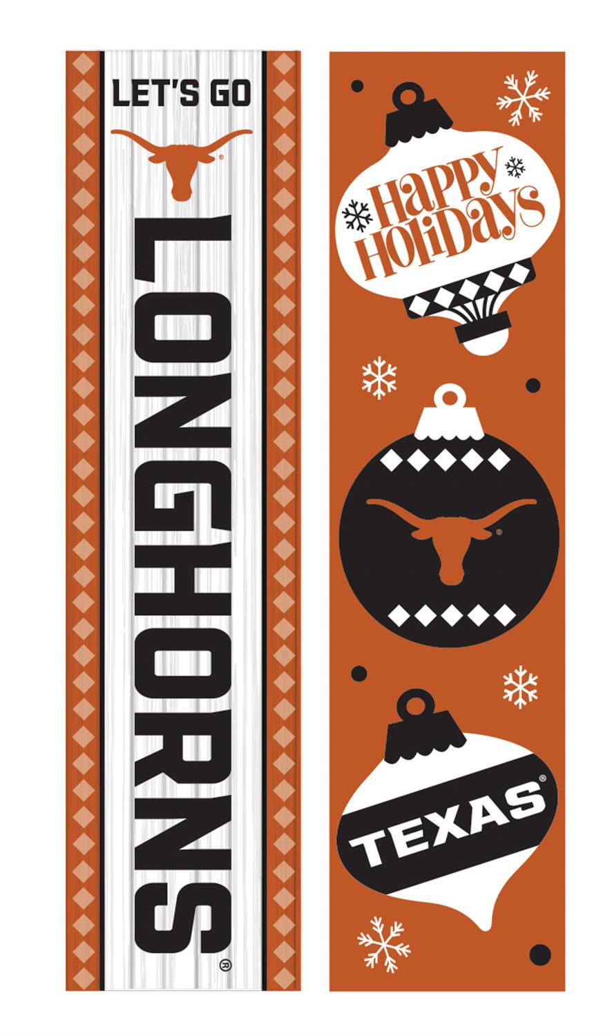 Celebrate the holiday season with a touch of collegiate spirit using the 46" Double Sided Leaner featuring University of Texas pride. This porch leaner is perfect for die-hard fans who want to showcase their Longhorns loyalty. Crafted for durability, it features festive designs on both sides, making it ideal for Christmas and all-year-round display. Its slim dimensions fit perfectly in any entryway or porch, adding a welcoming touch to your home décor.