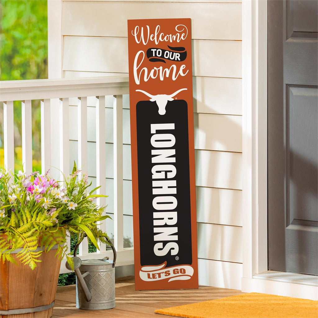 Celebrate Halloween with a touch of Texas pride using this 46-inch double-sided porch leaner. Perfect for displaying your love for the University of Texas, this leaner features a festive design with classic Halloween imagery like a pumpkin and witch's hat. The sturdy construction ensures it withstands the season's elements, while its vibrant colors add a lively touch to your porch decor. Easily switch sides for a different look, making it versatile for any occasion. Enhance your Halloween decorations with this unique blend of school spirit and spooky fun.