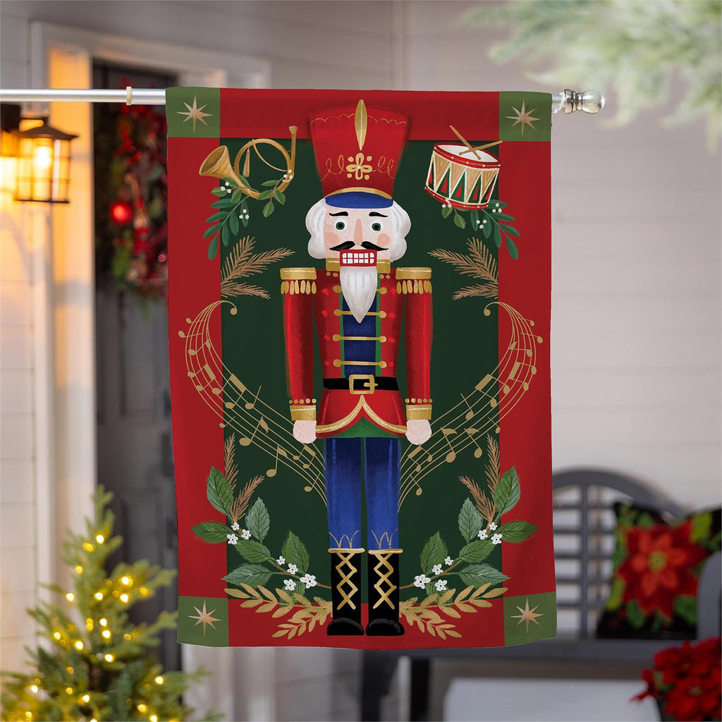 Celebrate the holiday season with the Joyful Traditions Double Sided Burlap House Flag. Measuring 28 by 44 inches, this vibrant flag features a classic nutcracker design that adds festive charm to any home. Made from durable burlap, it withstands outdoor conditions while maintaining its bright colors. The double-sided design ensures visibility from all angles, making it perfect for greeting guests or adding seasonal flair to your garden or porch. Easy to hang and versatile, this flag is a delightful addition to your holiday décor collection.