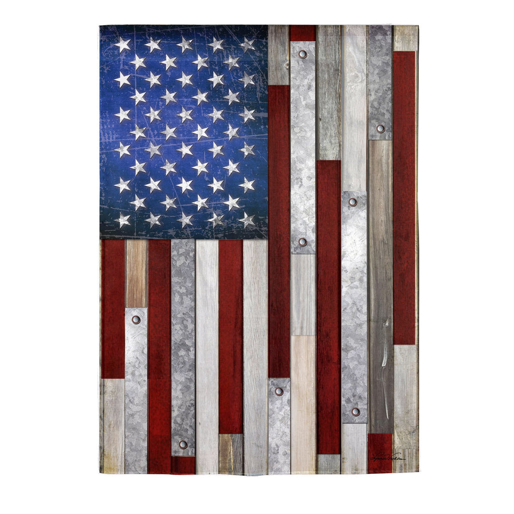 Celebrate your patriotic spirit with the Wood Stripe American Flag Suede House Flag, featuring a rustic wooden design that adds charm to any home exterior.