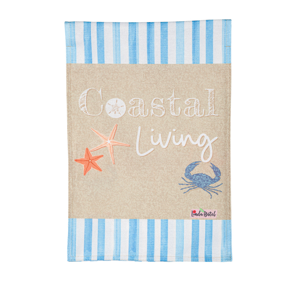 This flag is made of medium-weight, soft polyester burlap fabric that has the look and feel of real burlap. Artwork is heat transferred onto both sides of the textured fabric to create a natural, crafted look. The poly-burlap is a durable and weatherproof