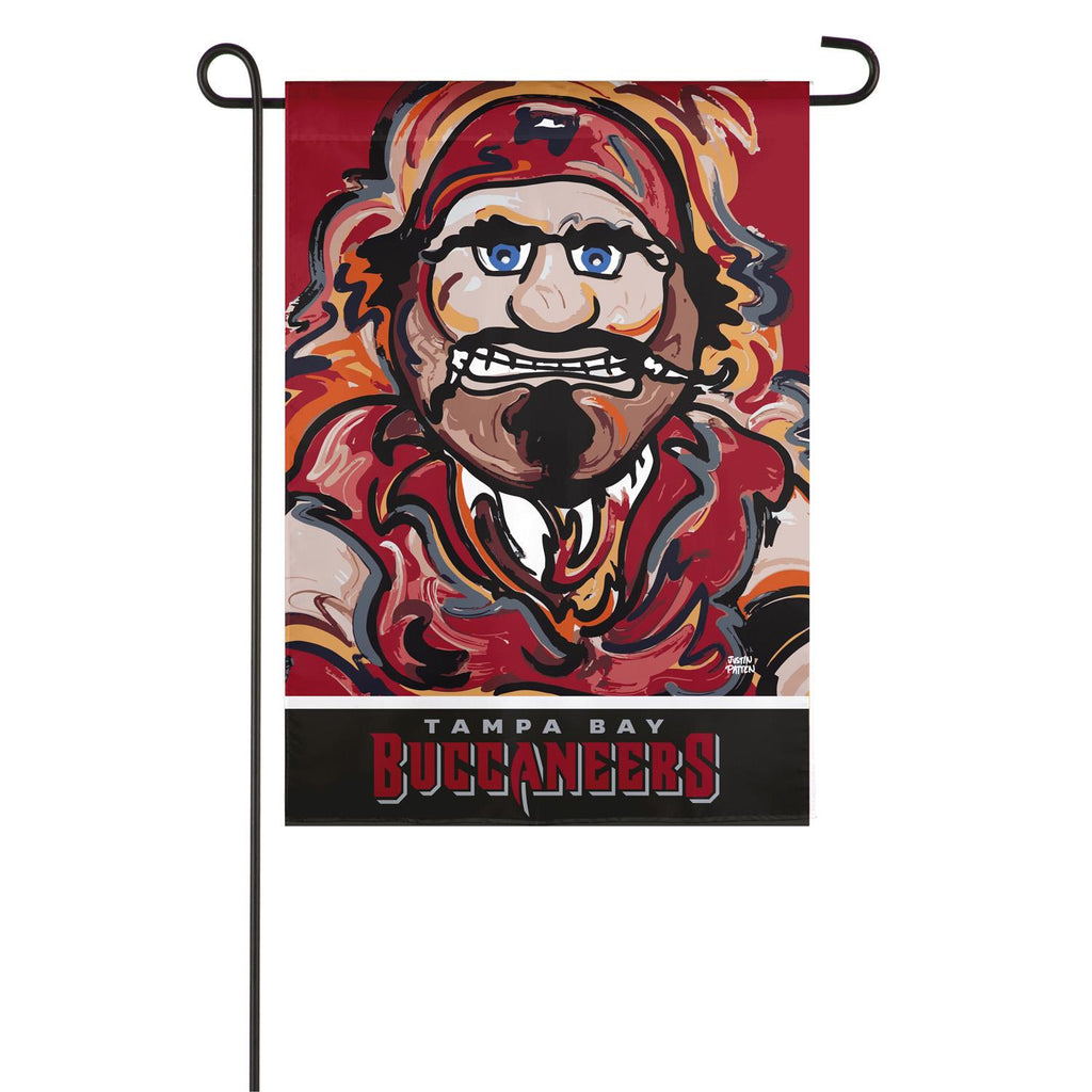 This Tampa Bay Buccaneers suede garden flag comes from the inspiring work of painter Justin Patten. This design features Captain Fear, the team's official mascot. Also featuring vibrant Tampa Bay Buccaneers colors, this garden flag is the perfect way to show team spirit during football season and beyond. This Patten piece is truly one of a kind and makes a great gift for a fan of the Buccaneers. This Suede Reflections flag is made of medium-weight, polyester suede that provides a soft and durable texture. Artwork is heat transferred onto the sun-blocking material so that it is easily viewed from both sides. The weatherproof poly-suede will not fray or fade with continued outdoor use. The brilliant colors make any Suede Reflections flag the perfect addition to your garden or yard. This flag features a sleeve for use with any standard flagpole or stand, sold separately.
