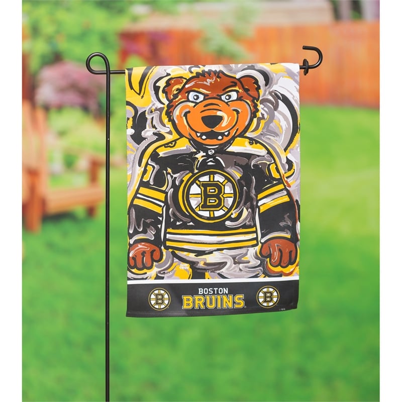 This Boston Bruins sublimated suede garden flag showcases an original work of art by painter Justin Patten, featuring a whimsical take on the mascot trend for a more artisan look that everyone will love to show support for their team. Adding new energy an