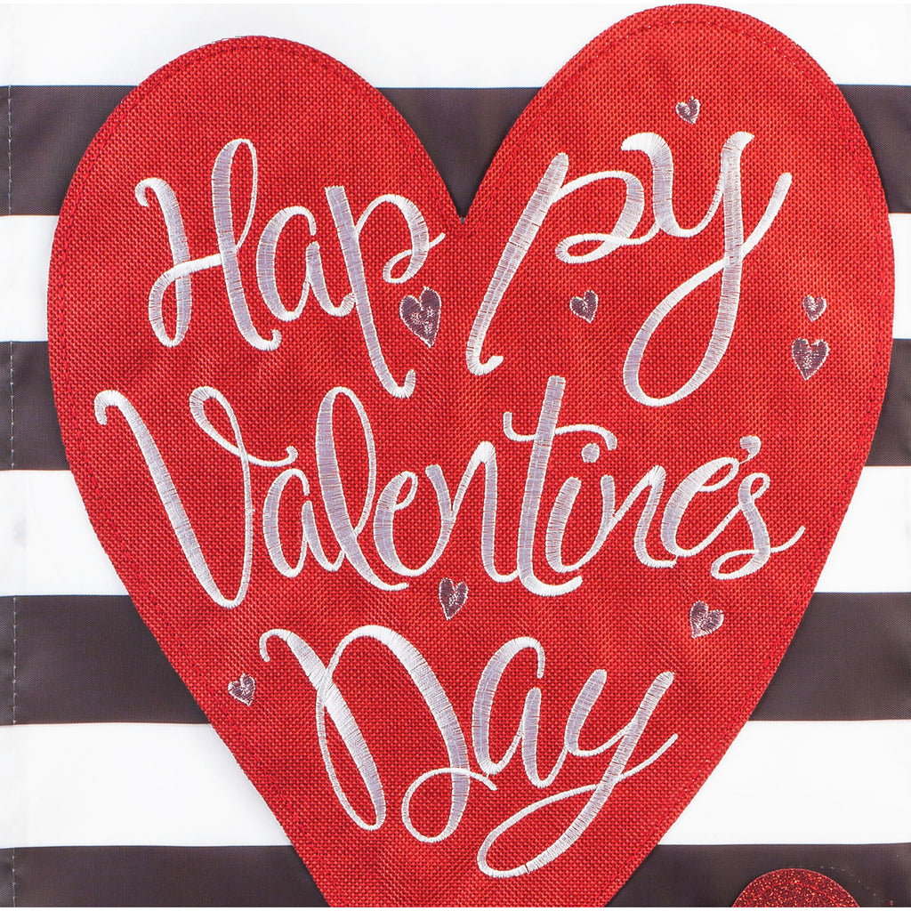 Valentine's Stripe House Applique Flag. Evergreen Flag celebrates your unique style. Whether you are looking for the finishing touch to make your house an enjoyable home, from seasonal patio, home and garden decor, to innovative interior art, we've got you covered. Our catalog has thousands of house and garden flags, doormats, garden stakes, wind chimes, bird houses and so much more. Whether you are hosting an event or looking for a perfect gift - look no further. Evergreen Flag is the perfect "Greeting Card of Your Home." Offering you unique, value-priced options to add fun, eye-catching personality to their homes has been our focus for decades. We started designing and producing flags over 25 years ago, and we continue to work to deliver innovative and fun designs and techniques to this collection to be enjoyed season after season, year after year. This beautiful addition to your home, garden, patio or yard is crafted from weather resistant, fade resistant premium materials. It is designed to last for many seasons to come.