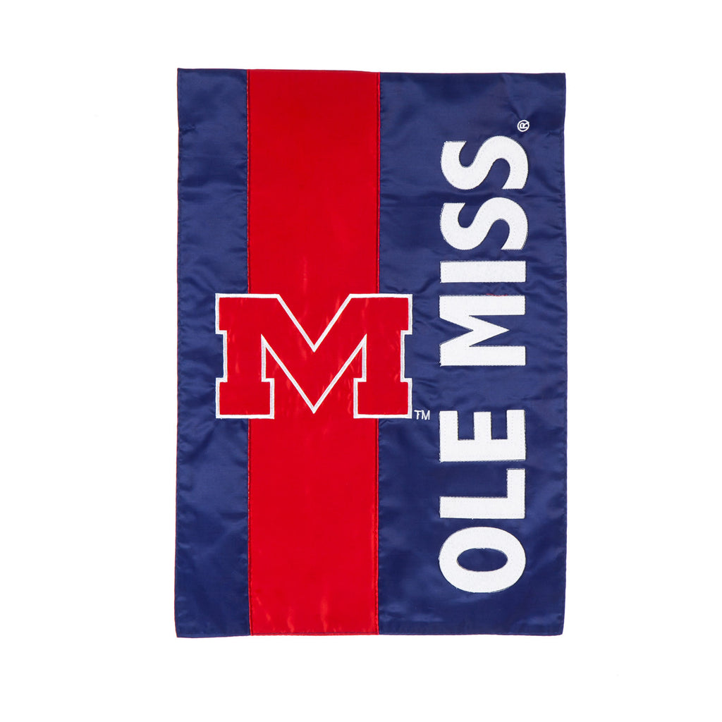 University of Mississippi, Embellish GDN Flag. Evergreen Flag celebrates your unique style. Whether you are looking for the finishing touch to make your house an enjoyable home, from seasonal patio, home and garden decor, to innovative interior art, we've got you covered. Our catalog has thousands of house and garden flags, doormats, garden stakes, wind chimes, bird houses and so much more. Whether you are hosting an event or looking for a perfect gift - look no further. Evergreen Flag is the perfect "Greeting Card of Your Home." Offering you unique, value-priced options to add fun, eye-catching personality to their homes has been our focus for decades. We started designing and producing flags over 25 years ago, and we continue to work to deliver innovative and fun designs and techniques to this collection to be enjoyed season after season, year after year. This beautiful addition to your home, garden, patio or yard is crafted from weather resistant, fade resistant premium materials. It is designed to last for many seasons to come.