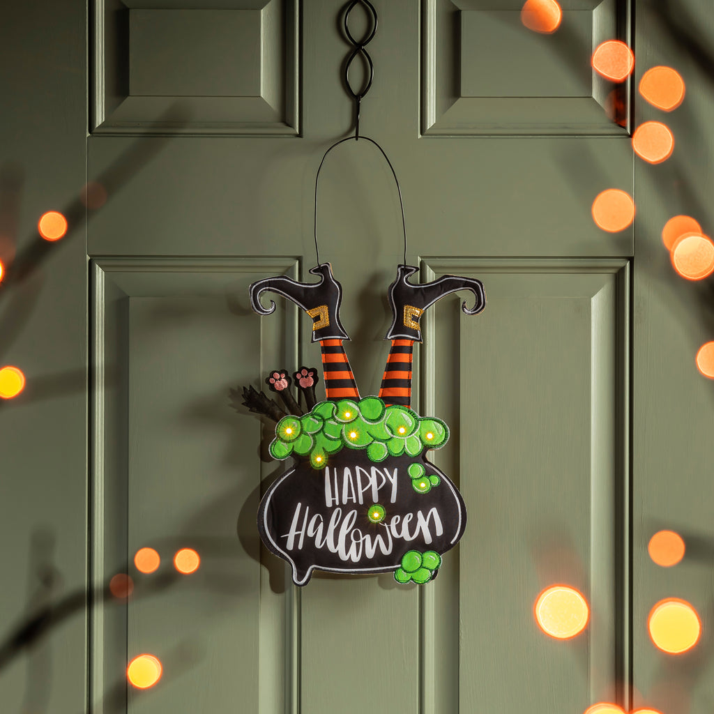 Evergreen decorative door decor are made of high quality, poly-blend felt or burlap with weatherproof fabric. Door decor is built with tight & detailed stitching for durability. They can be easily hung over the door hangers or wreath hangers and comes with a grosgrain ribbon.