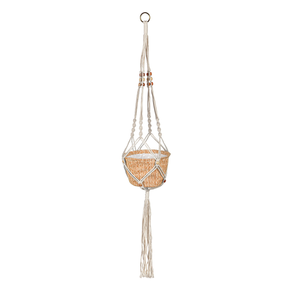 Olivia Fabric Planter with Macrame Holder, Ochre,2fp043