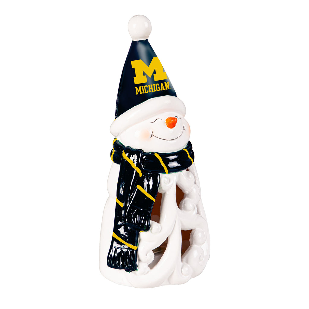 Celebrate your University of Michigan pride with this charming LED snowman statuary, perfect for adding a festive touch to your home decor. This delightful piece features a snowman wearing a University of Michigan scarf and hat, illuminated by LED lights for a warm glow.