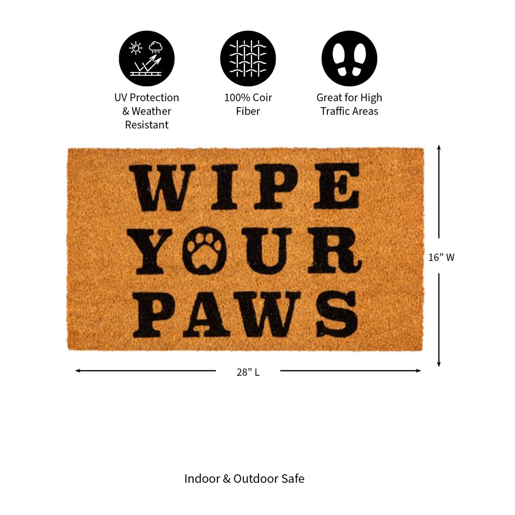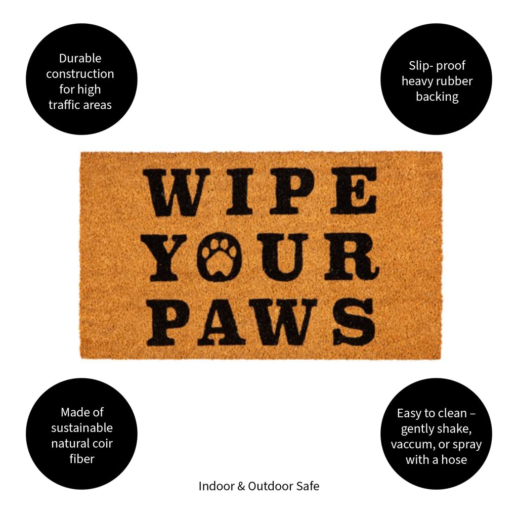 - Features a playful 'Wipe Your Paws' message with a paw print for added charm.