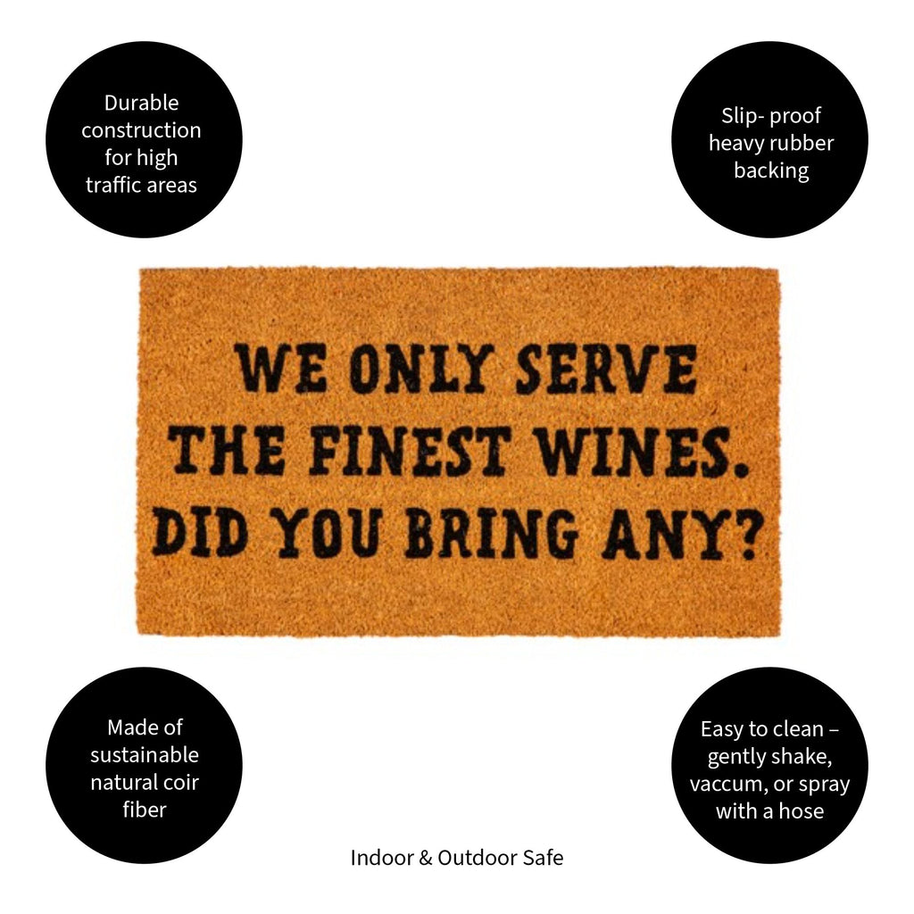 Welcome guests with a touch of humor using this coir doormat featuring a witty wine-themed message. Perfect for everyday use, it adds charm and personality to your doorstep.