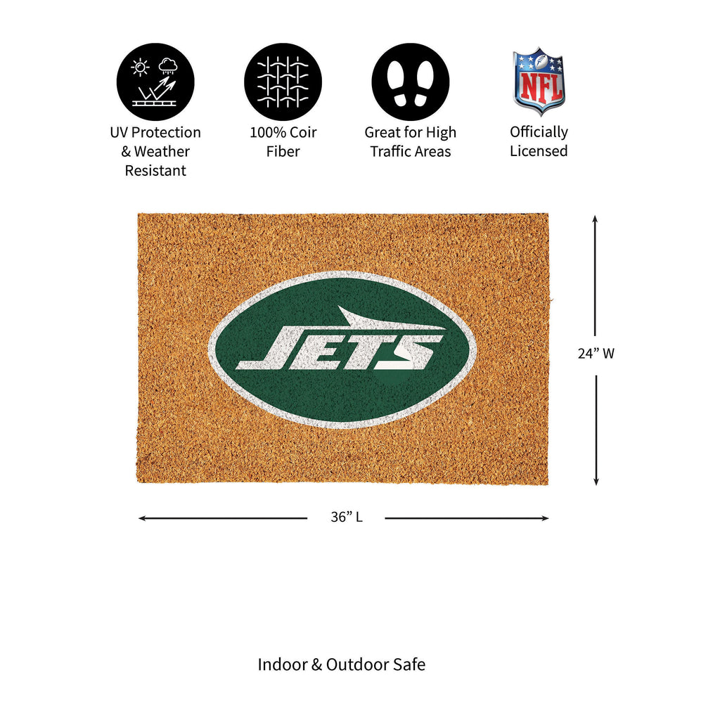 Welcome guests with the New York Jets Large Full Color Coir Mat, designed to showcase your team pride in style. Made from durable coir, this mat is perfect for both indoor and outdoor use.