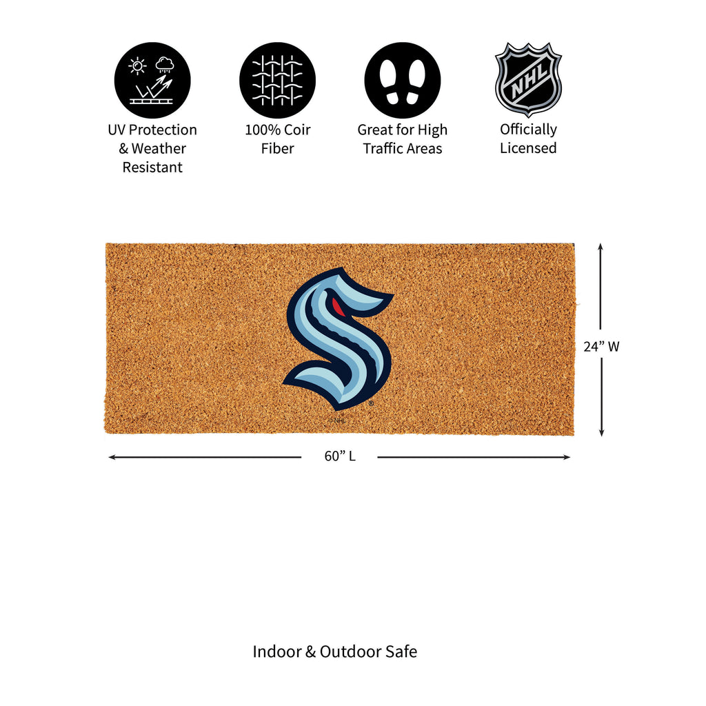 Showcase your team spirit with the Seattle Kraken Extra Large Full Color Coir Mat. This durable mat is perfect for any outdoor entry, offering both style and functionality.