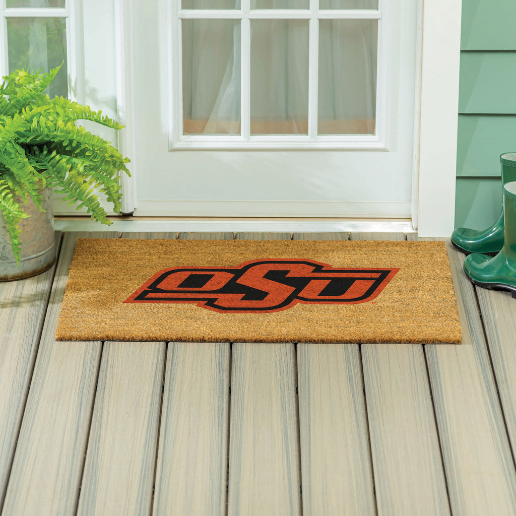 Showcase your school spirit with this Oklahoma State University Large Full Color Coir Mat. Perfect for any entryway, this durable mat features the bold OSU logo on a natural coir background.