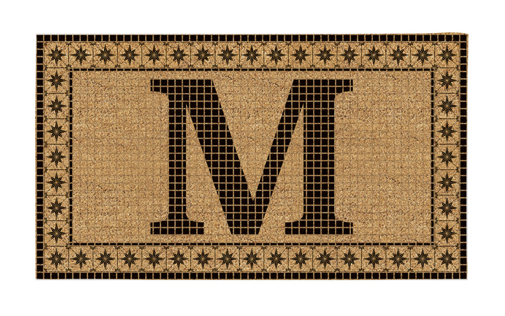 Monogram Flocked Coir Vintage Tile Mat, Letter M,2rmc1296mm