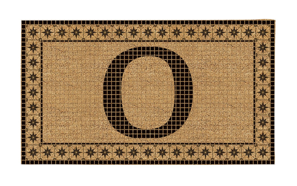 Monogram Flocked Coir Vintage Tile Mat, Letter O,2rmc1296mo