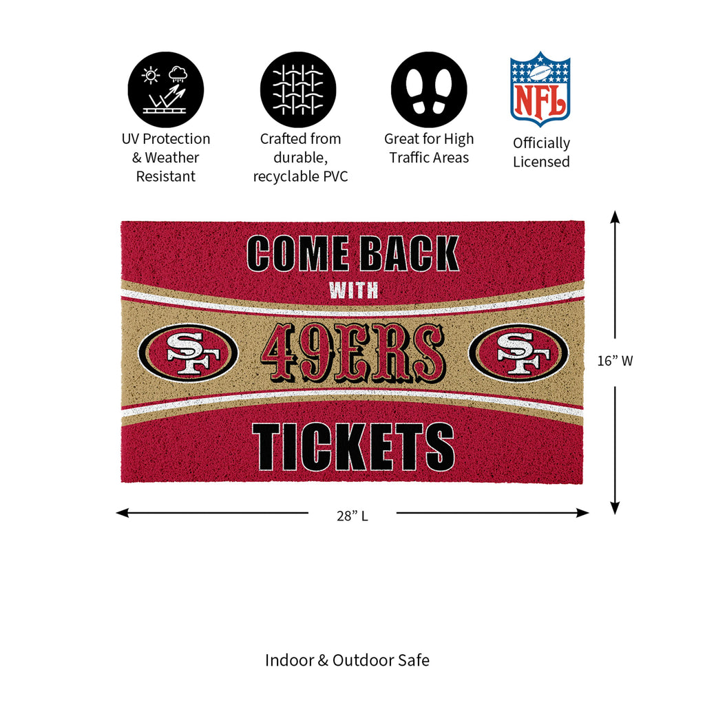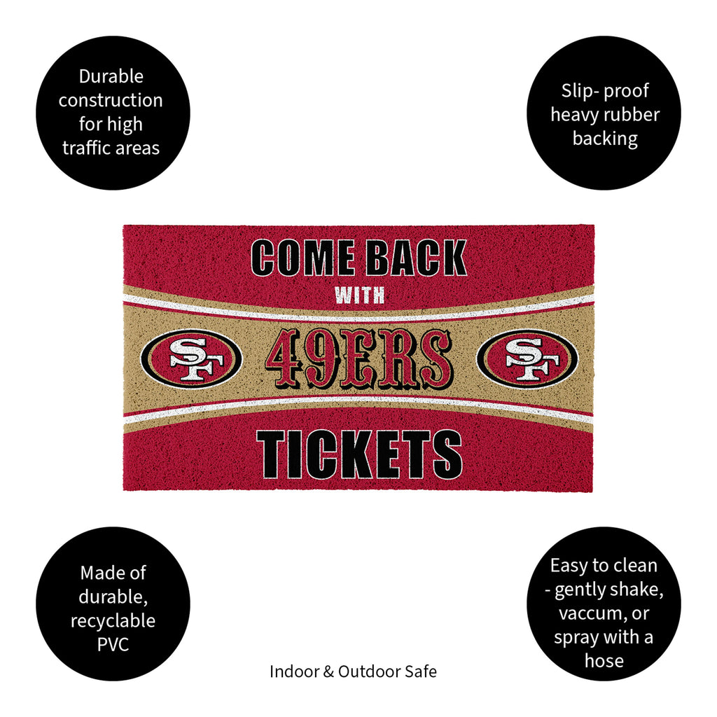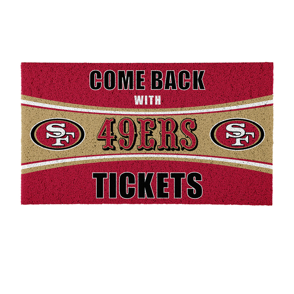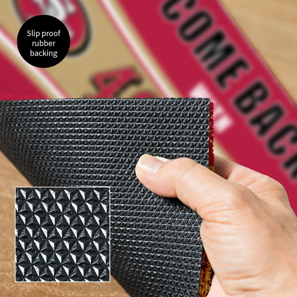 Welcome your guests with this officially licensed San Francisco 49ers PVC trapper mat. Designed for durability, it features a bold team logo and message, perfect for high-traffic areas.