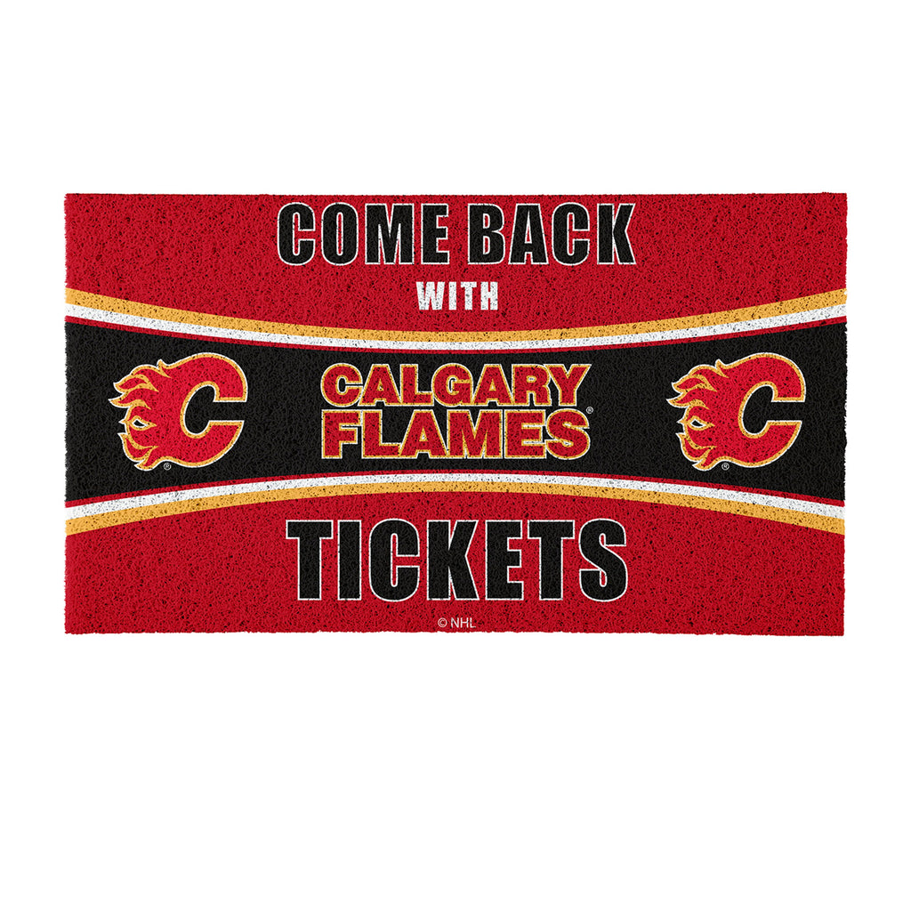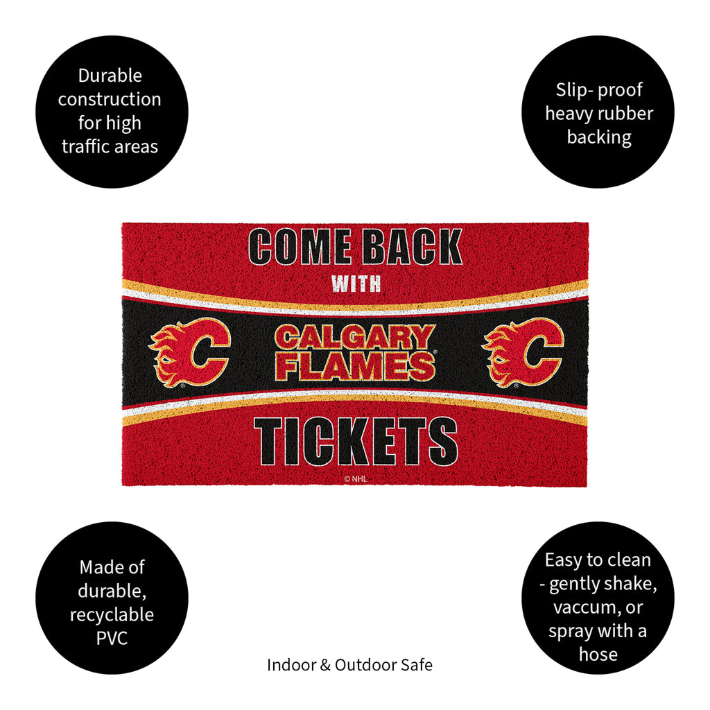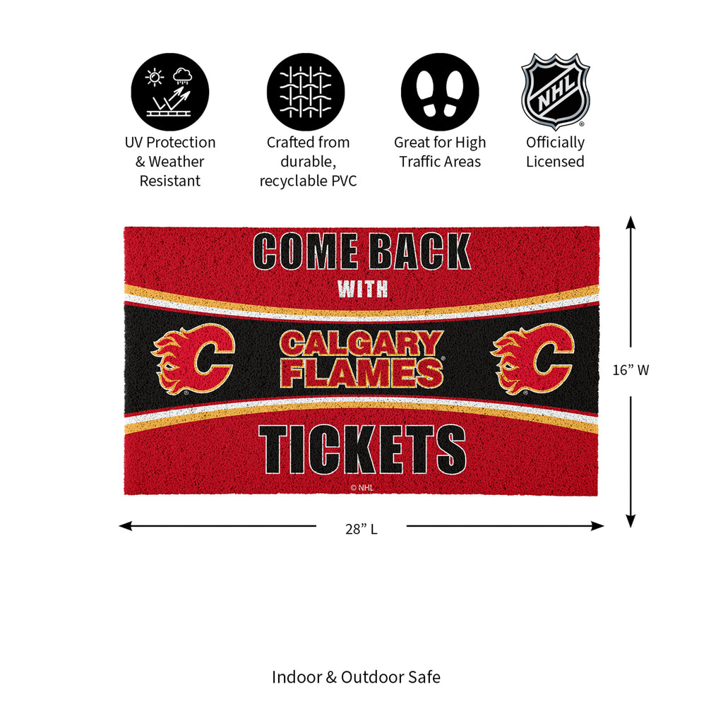 Welcome guests with team spirit using the 28" x 16" PVC Trapper Mat featuring the Calgary Flames logo. This durable mat is designed for both indoor and outdoor use.