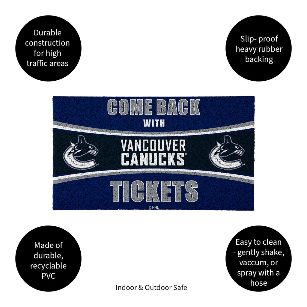 Show your support for the Vancouver Canucks with this durable PVC trapper mat, perfect for both indoor and outdoor use. Officially licensed and weather-resistant, it's an ideal addition for any fan's entryway.