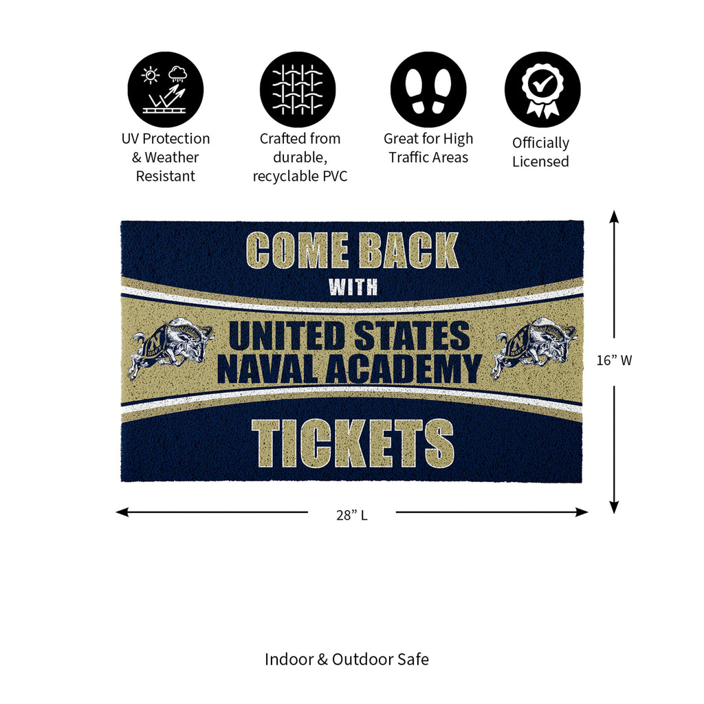 28" x 16" PVC Trapper Mat, Come Back with Tickets, US Naval Academy