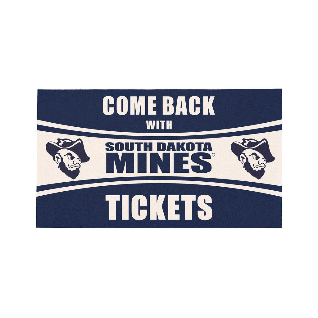 Welcome guests with the 28" x 16" PVC Trapper Mat, featuring the spirited message 'Come Back with Tickets' for South Dakota School of Mines & Technology fans.