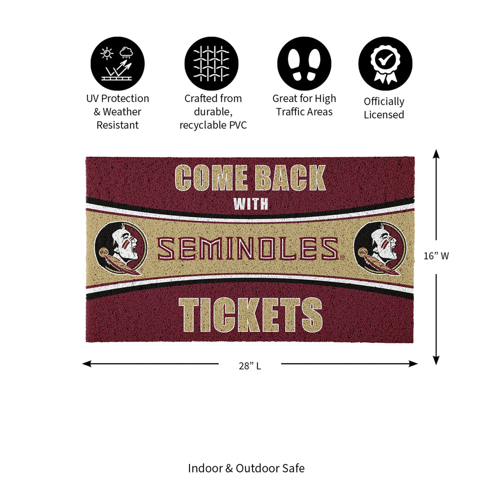 Show your team spirit with this officially licensed Florida State University trapper mat, perfect for indoor and outdoor use. Made from durable PVC, this mat is designed to withstand high traffic areas while adding a touch of collegiate pride.