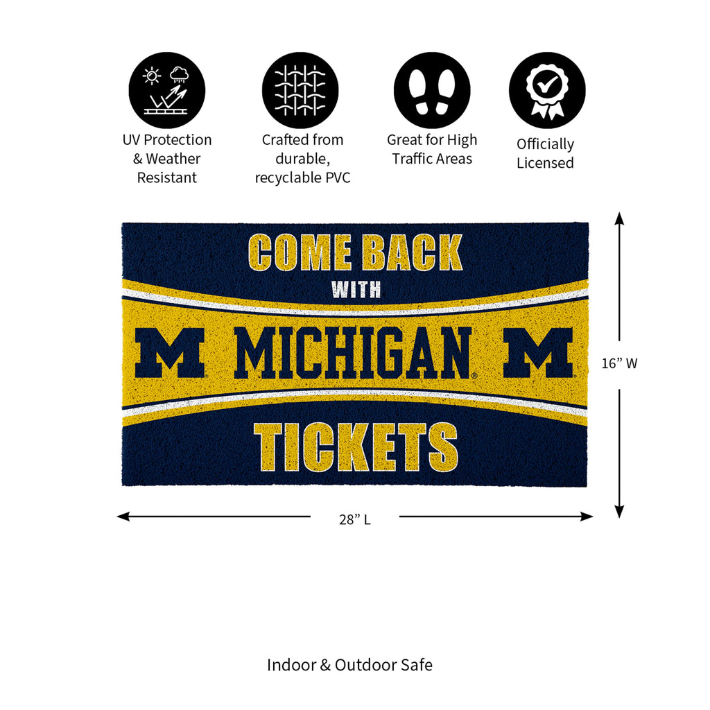 Show your school spirit with this 28" x 16" PVC mat featuring the University of Michigan design. Perfect for welcoming guests, it combines functionality with team pride.