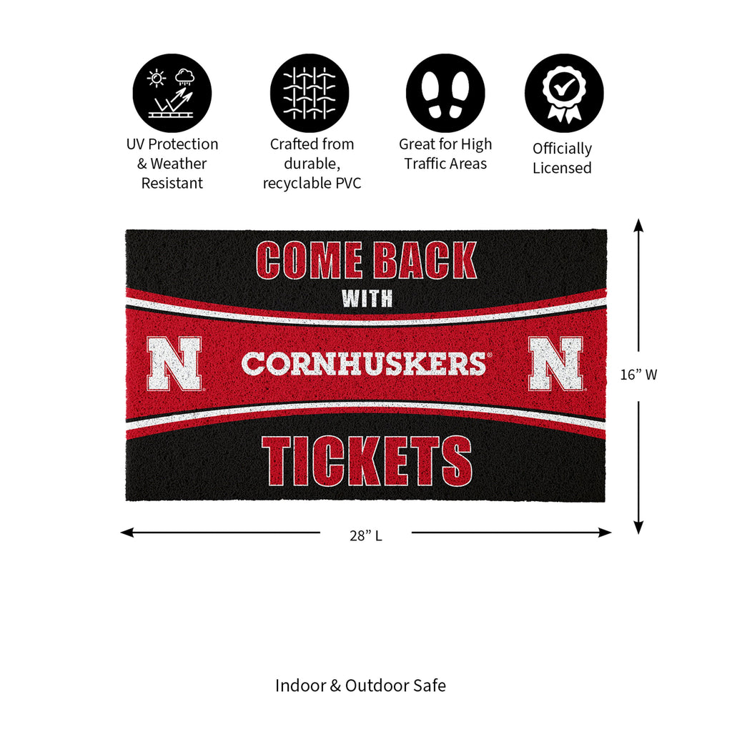 28" x 16" PVC Trapper Mat, Come Back with Tickets, University of Nebraska