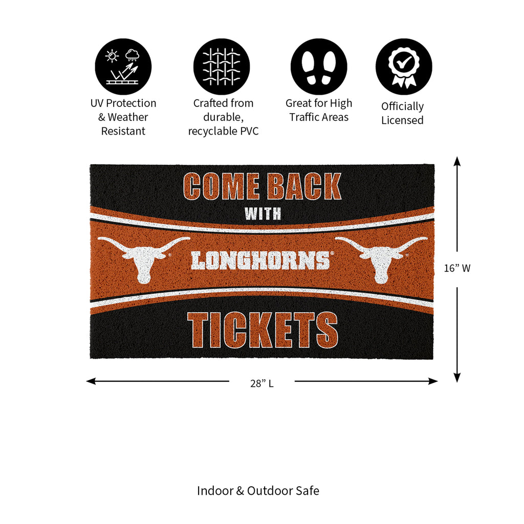 28" x 16" PVC Trapper Mat, Come Back with Tickets, University of Texas