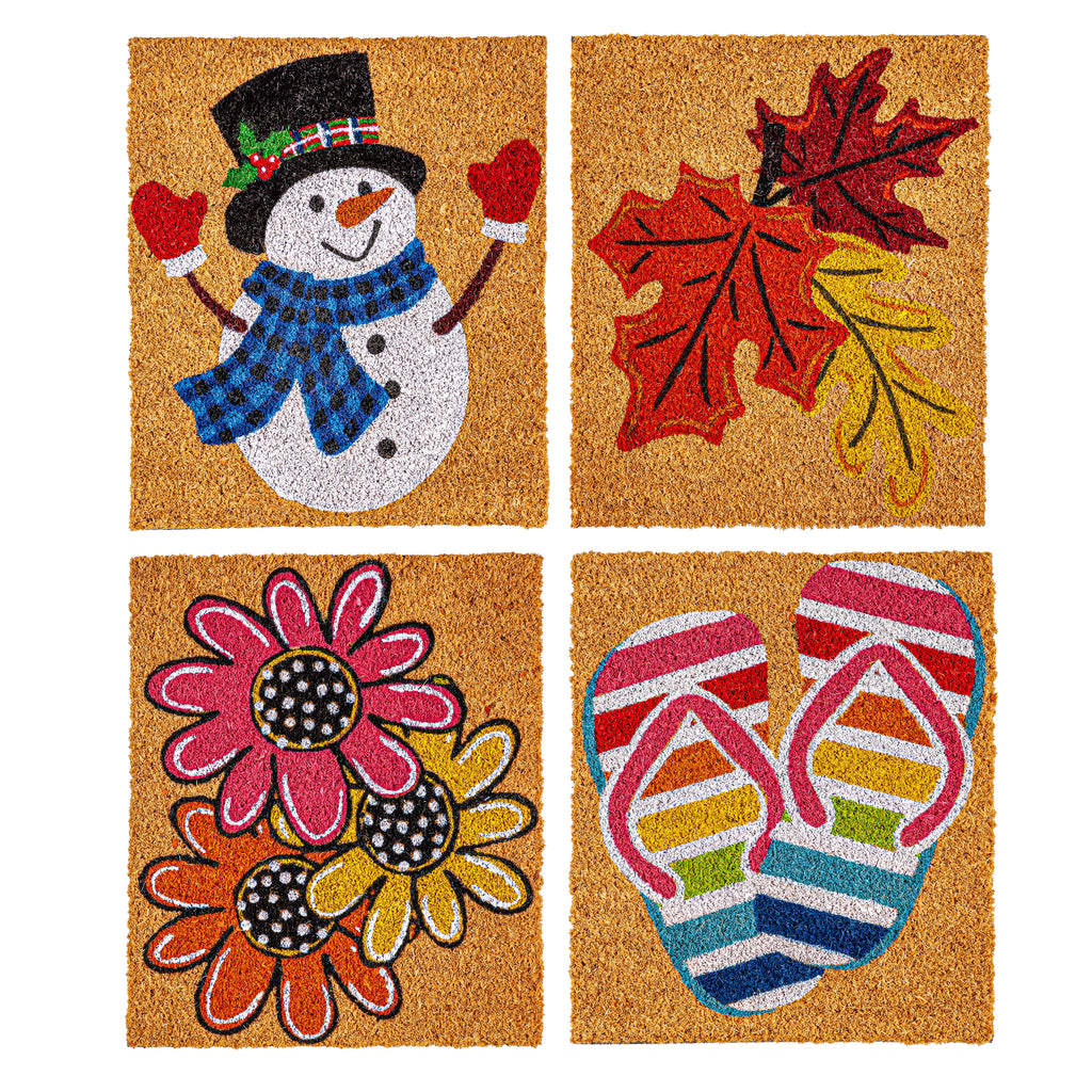 Seasonal Interchangeable Coir Mat Panel, Set of 4: Flowers/Flipflops/Leaves/Snowman,2rmi1246
