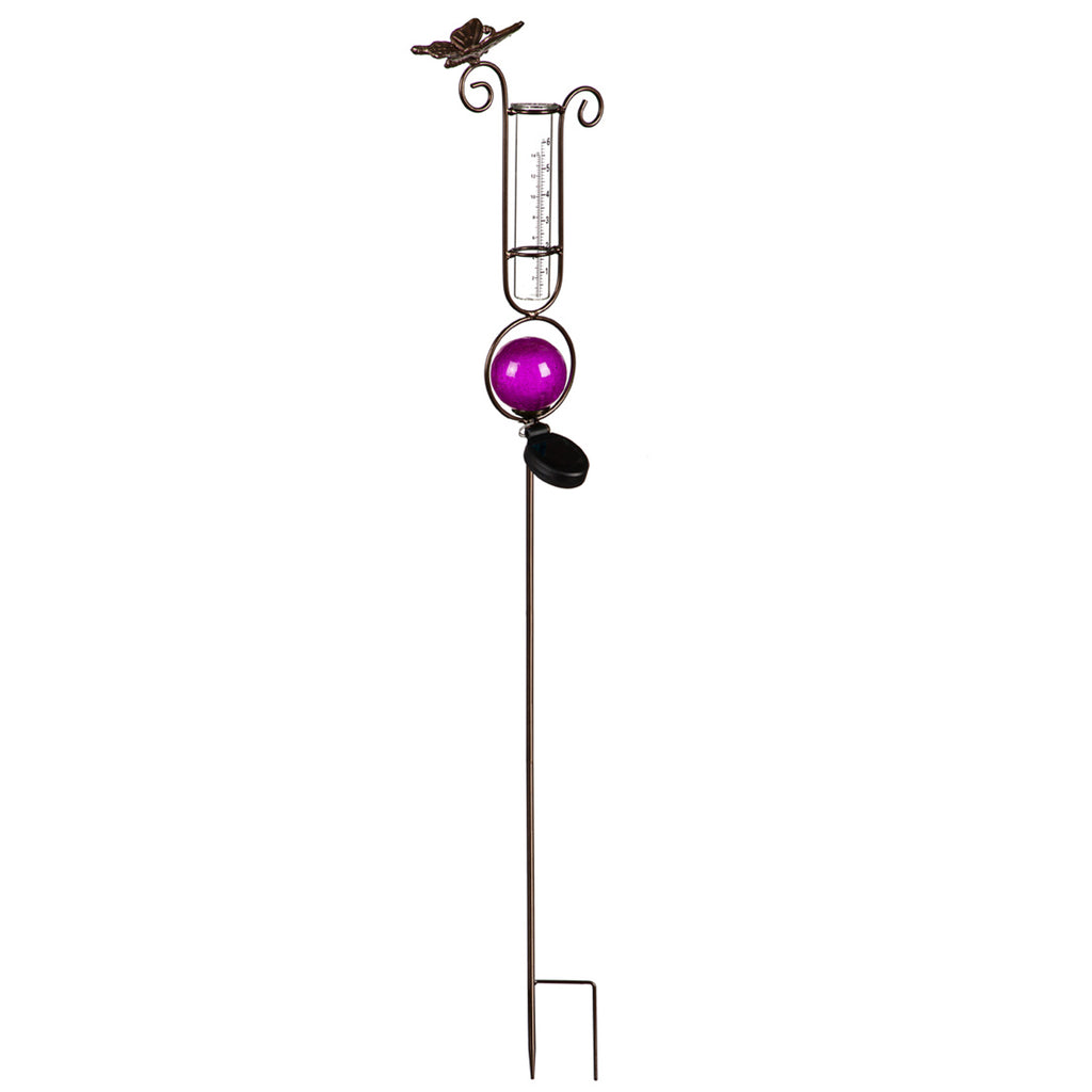 43.7"H Solar Rain Gauge Garden Stake, Pink,2sp6157cs