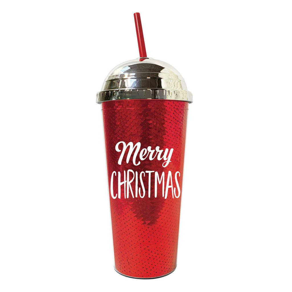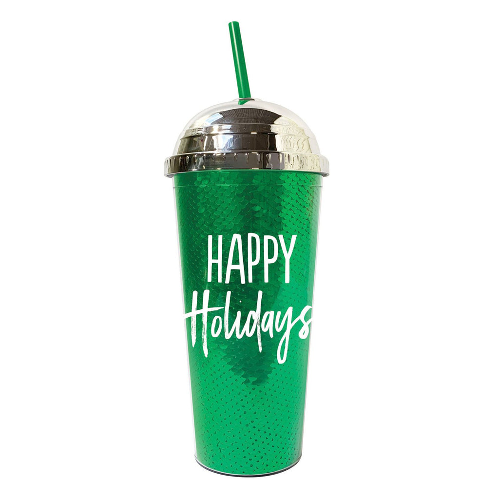 Acrylic Sequin Tumbler with Straw, 22 OZ, 2 Asst: Happy Holiday/Merry Christmas,3atc018