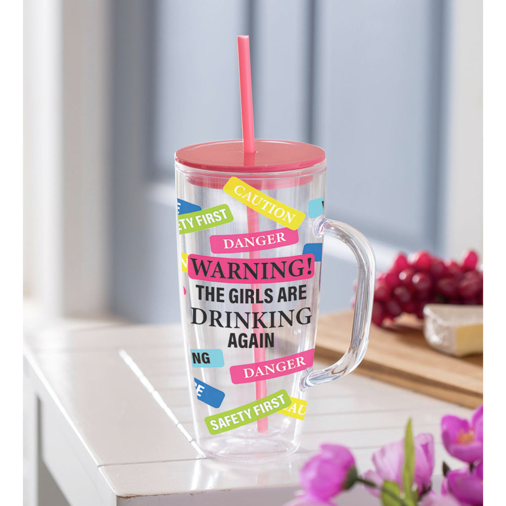 24 OZ Double Wall Tumbler with Straw, The Girls Are Drinking,3ath003
