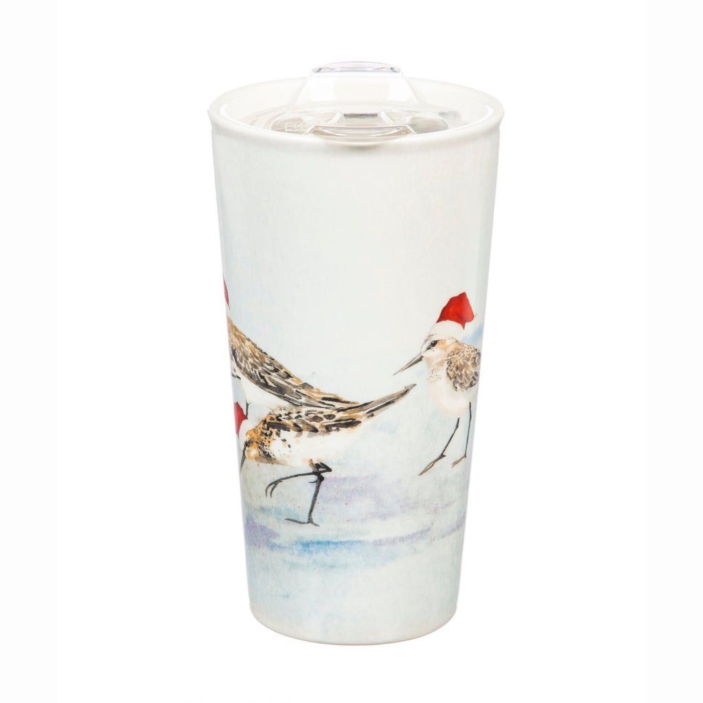 Ceramic Travel Cup, 17 OZ. ,w/box and Tritan Lid, Holiday Sandpipers,3ctc007334