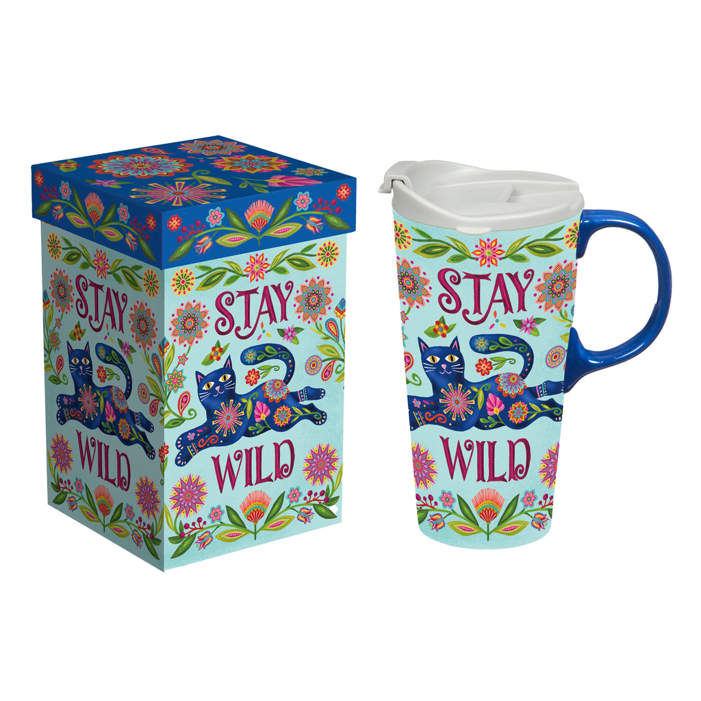 Ceramic Travel Cup, 17 OZ., w/box, Stay Wild,3ctc04029