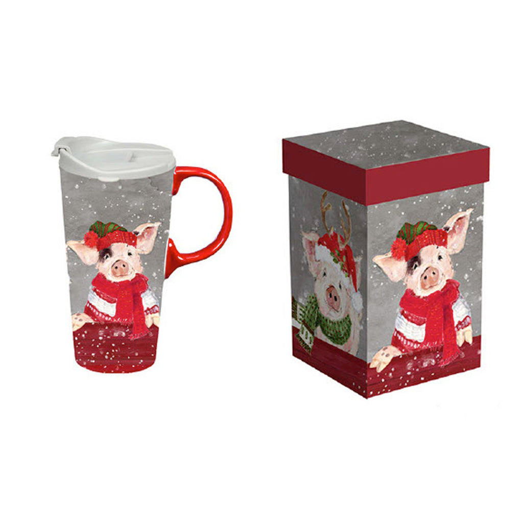 Ceramic Perfect Travel Cup, 17 oz., w/ box, Holiday Pig Friends,3ctc04041