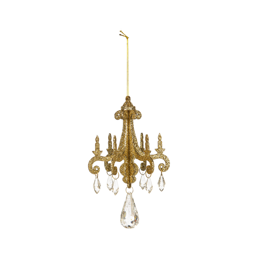 7" Wood Glitter Chandelier with Teardrop Ornament,3otw431