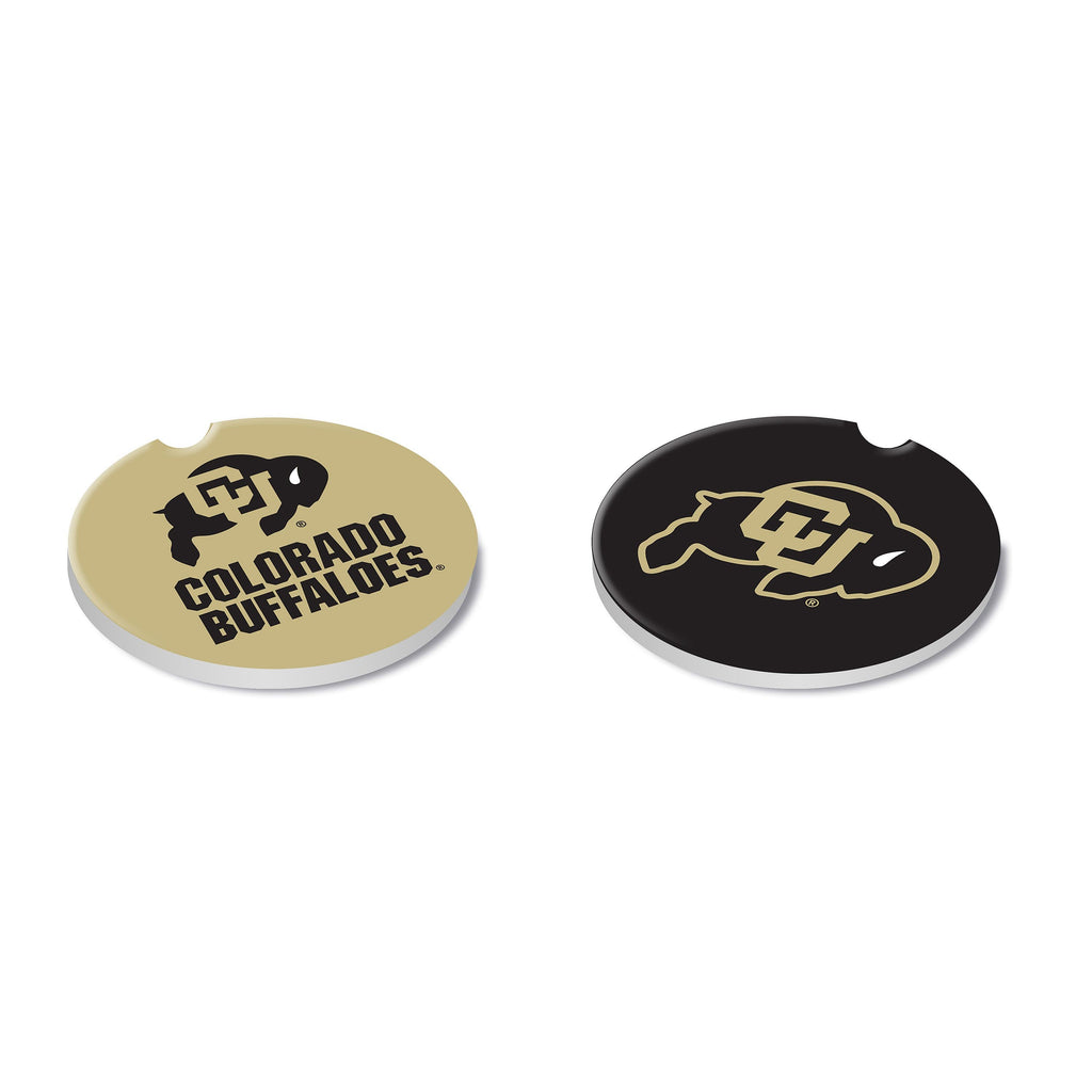 Show off your school pride with this University of Colorado Car Coaster Set. Designed to fit most vehicle cup holders, these coasters are both functional and stylish.