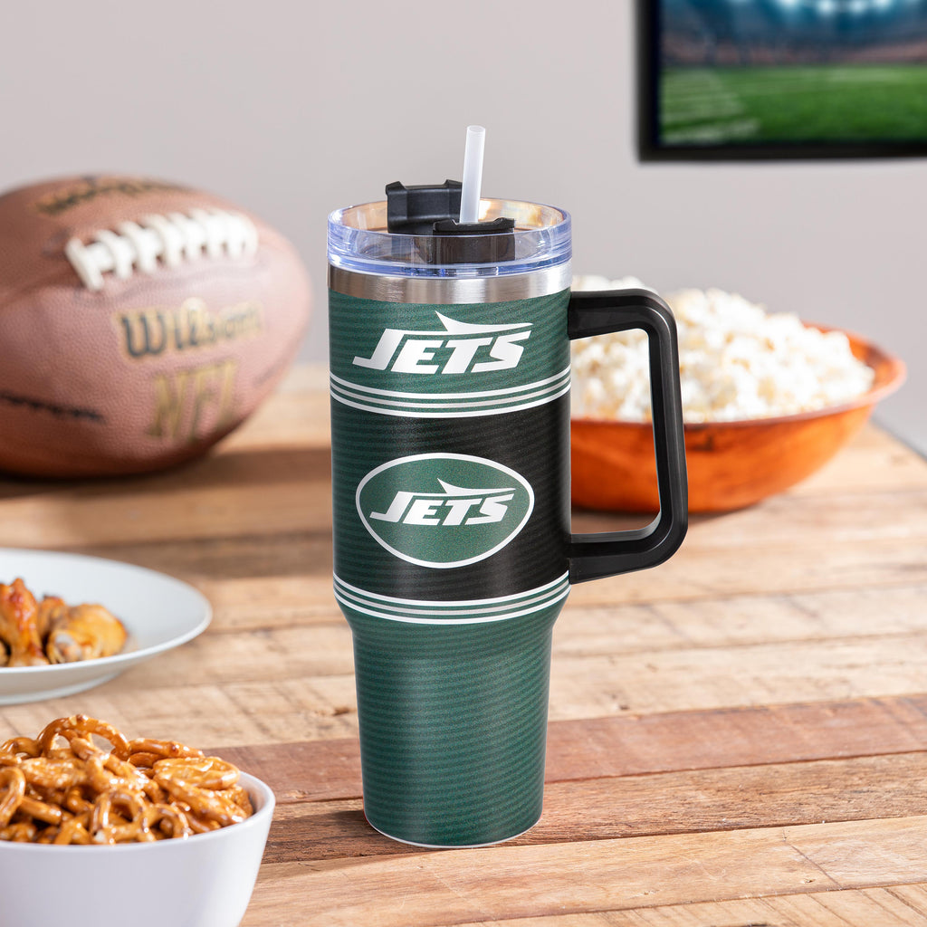 Show your team spirit with the 40oz Stainless Steel Canyon Cup featuring the New York Jets logo. Perfect for keeping your beverages at the ideal temperature during game day.