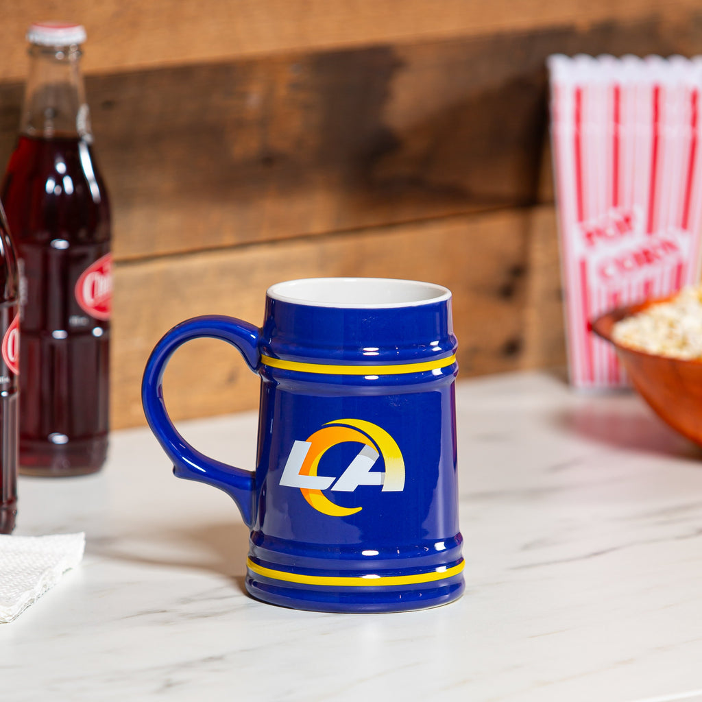 Show your team spirit with the Los Angeles Rams Ceramic Stein Cup, a perfect addition for any sports fan's collection. This 24oz stein features the iconic team logo and vibrant colors, ideal for game day celebrations.