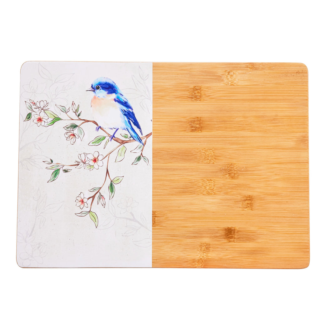 14" Wood Cutting Board with Enamel Design, Birds in Blooms,3wcb9863