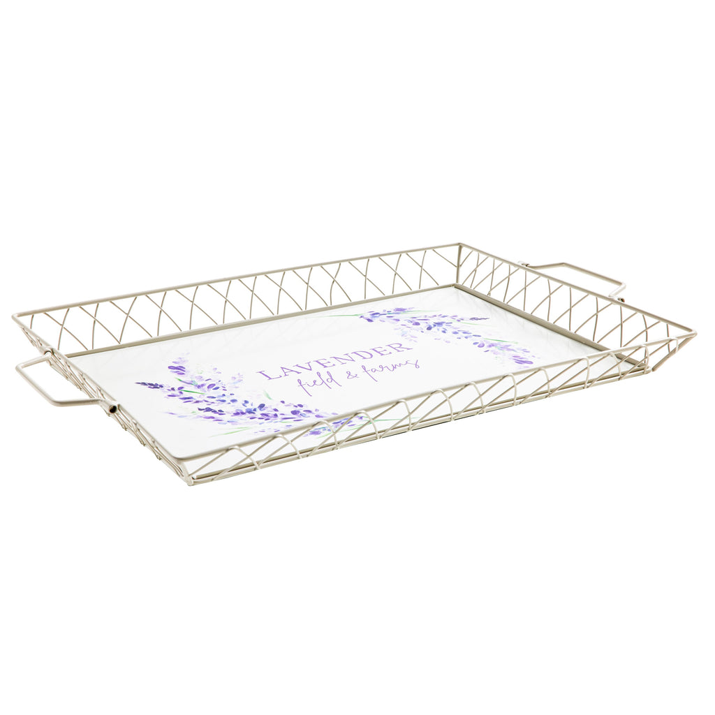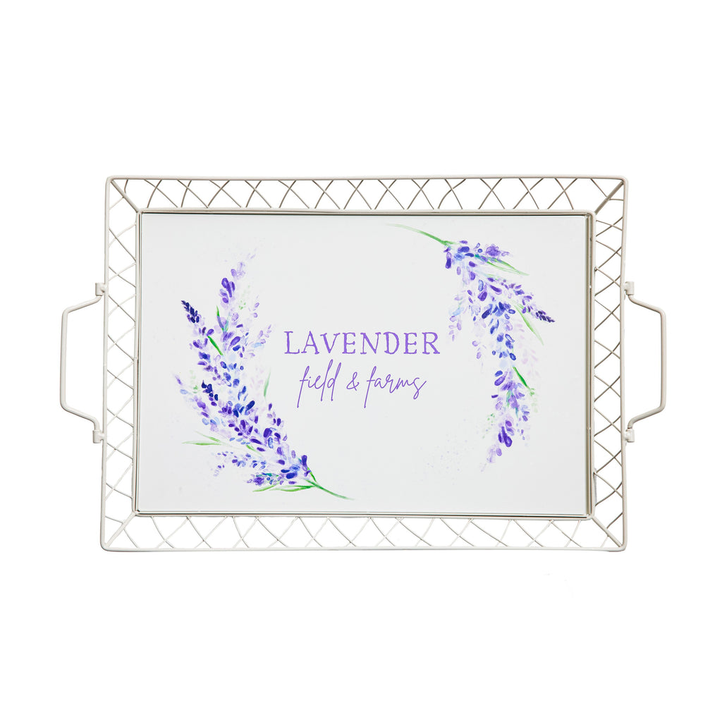 21" Tray with Metal Wire Border, Lavender Fields,3wtm9862