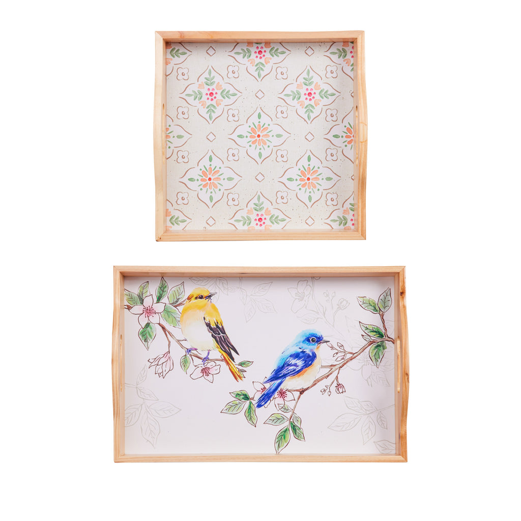 Nested Wood Serving Tray Set, Birds in Blooms,3wtn9863