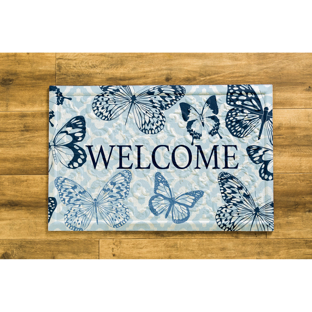 Oasis Blue Floral Embossed Floor Mat,41em7020a
