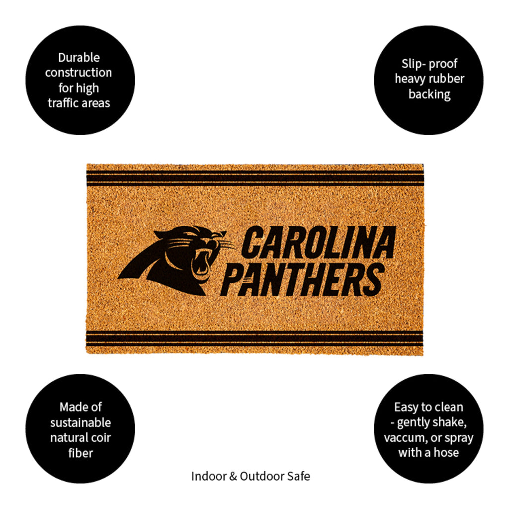Show your team pride with this Carolina Panthers coir mat, perfect for any football fan's entryway. Crafted from durable coir fiber, it ensures longevity and makes a bold statement.