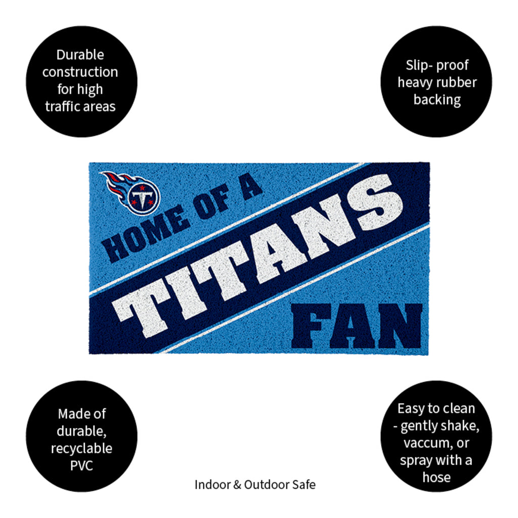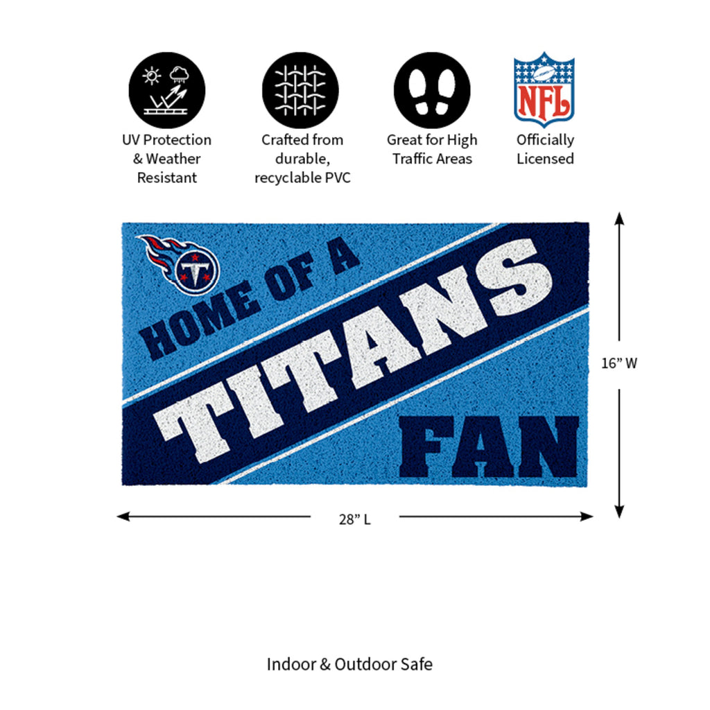 Show your support for the Tennessee Titans with this officially licensed PVC mat, perfect for any fan's home. Its durable design makes it suitable for both indoor and outdoor use.