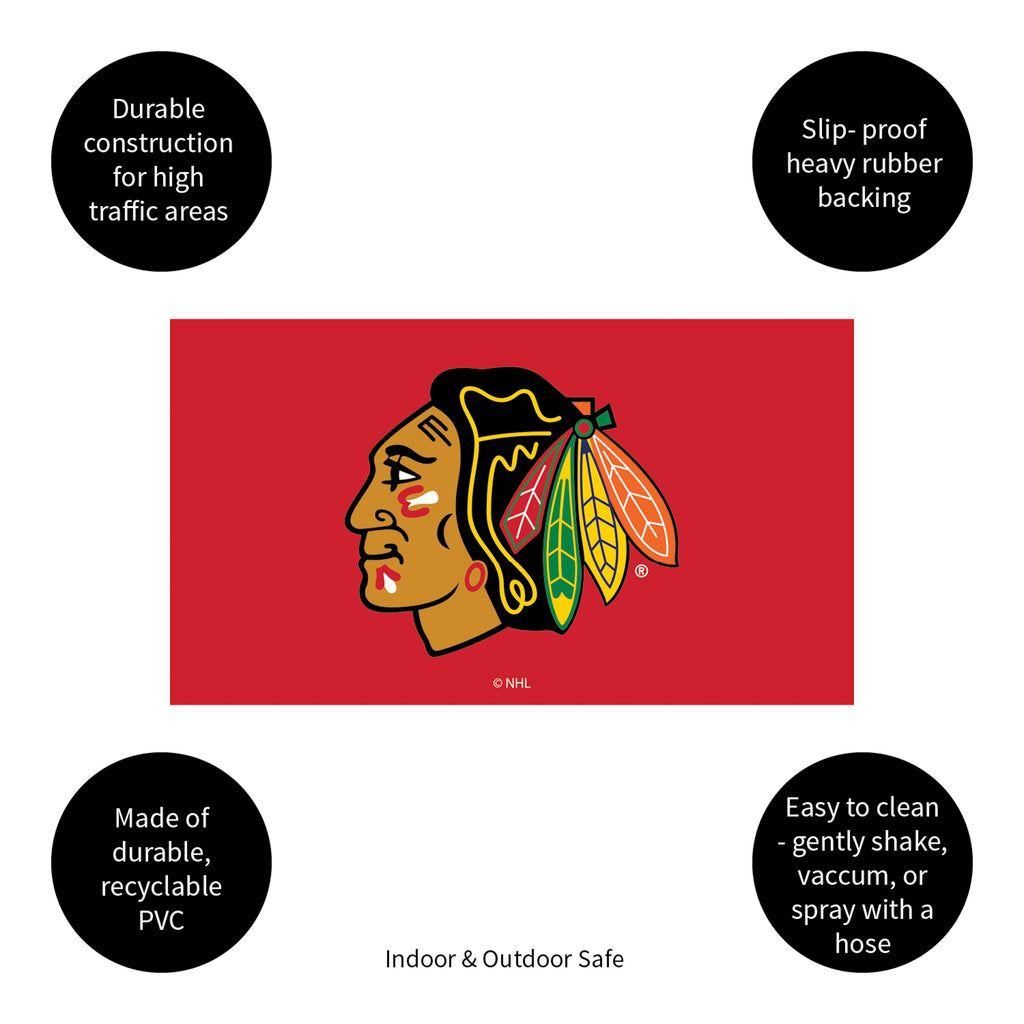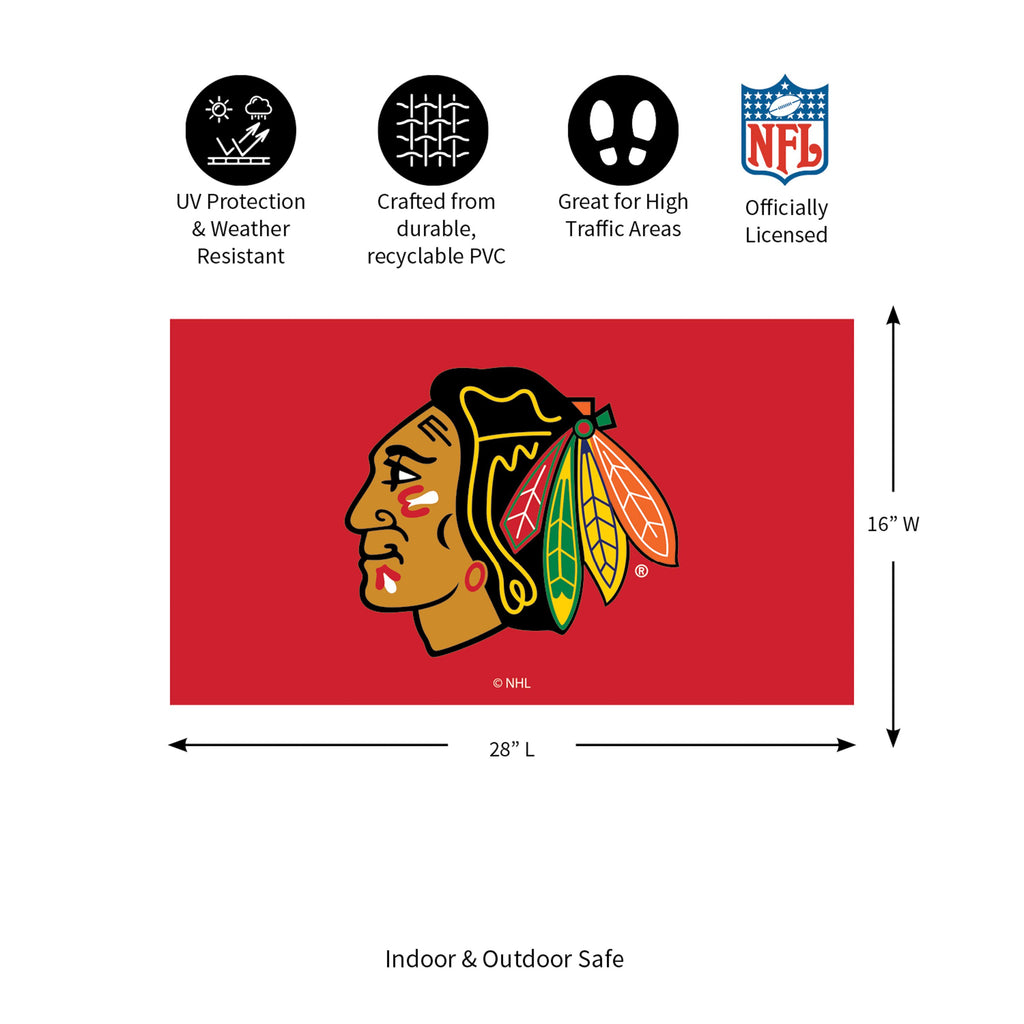 Showcase your team spirit with the Full Color PVC Mat featuring the Chicago Blackhawks logo. This durable mat is perfect for any entryway.